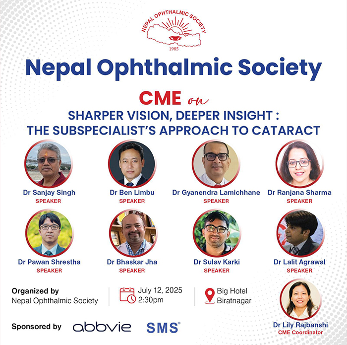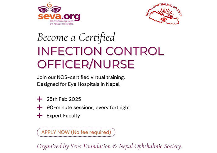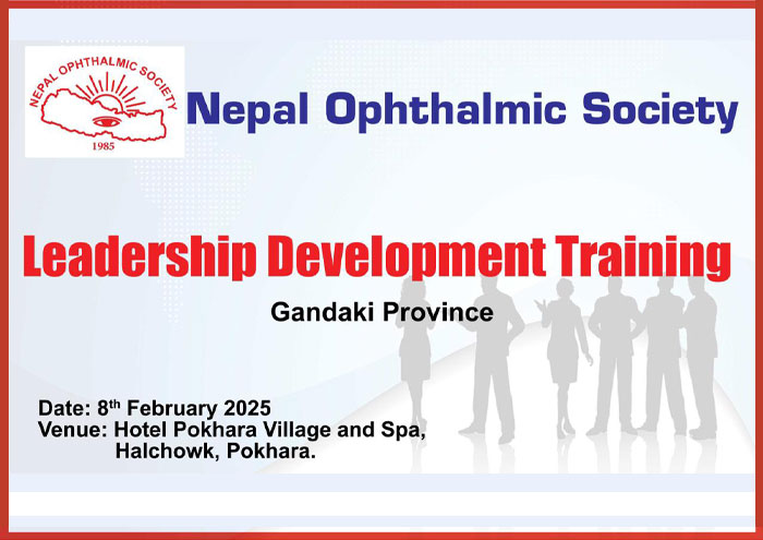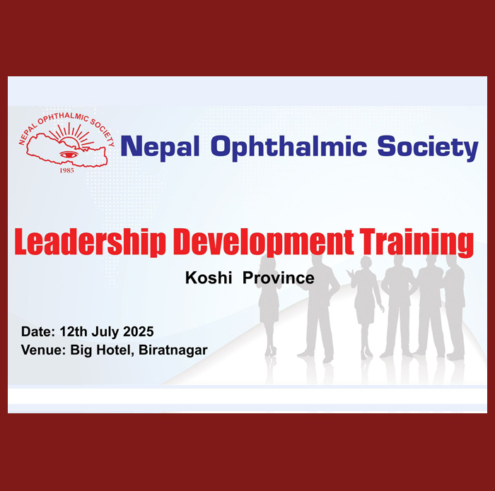 Events Upcoming Event Past Events Leadership Development - Koshi NOS CME on Sharper Vision 3rd Ophthalmology Space Leadership Development - Gandaki Infection Control Officer/Nurse NOSCON 2024 NOSCON 2023 NVRS 2023 NepJOph-2023